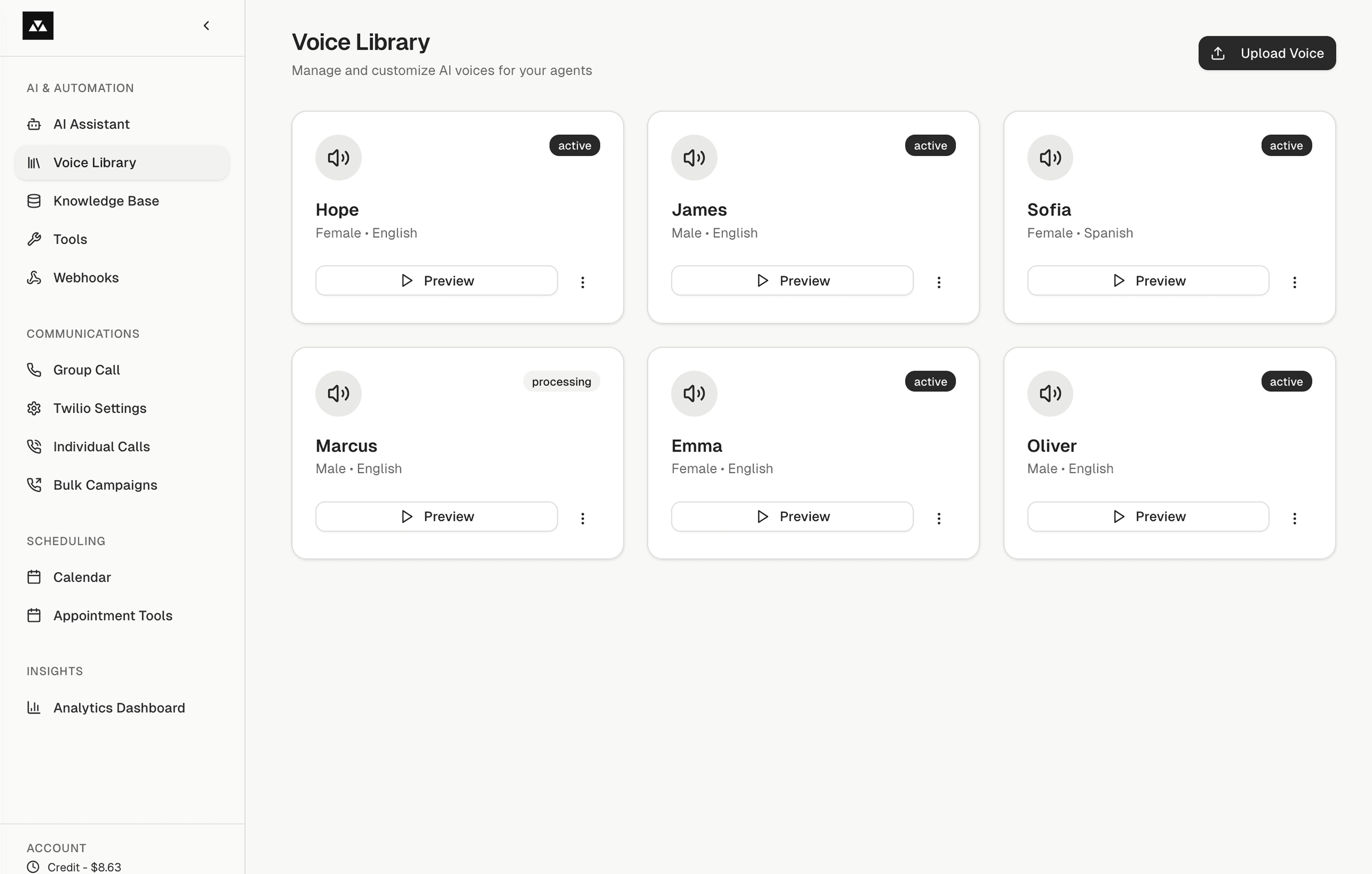 Create custom voice AI agents effortlessly using our no-code builder and voice API.